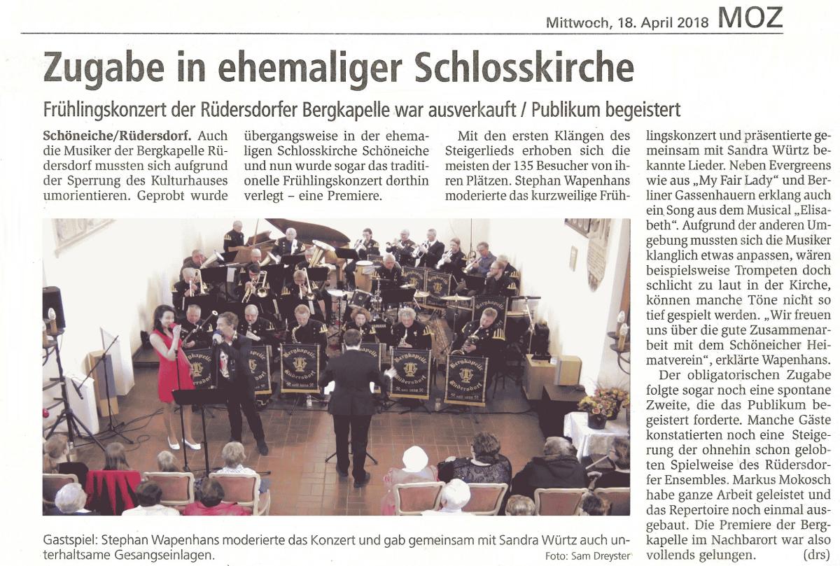 14. April 2019 Frühlingskonzert der Bergkapelle Rüdersdorf e.V. in der ehem. Schloßkirche Schöneiche.